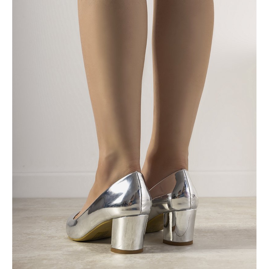 Descubra elegância e conforto com sapatos de salto alto prateados Harye! Estes sapatos únicos são a escolha perfeita para qualquer evento, garantindo estilo e conforto, mesmo que não goste de salto alto. O bico pontiagudo exclusivo não apenas estreitará visualmente o seu pé, mas também adicionará classe ao seu visual. O salto de 5,5 cm de altura realça subtilmente as pernas, tornando cada momento nestes scarpins inesquecíveis.