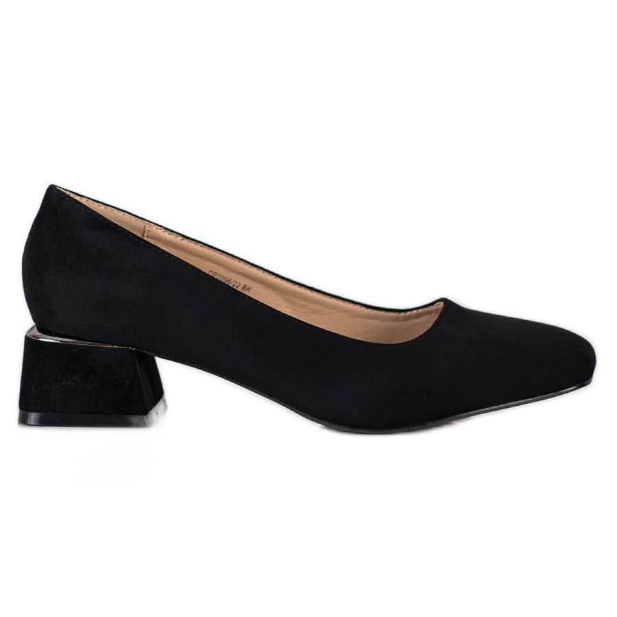 Os sapatos Filippo de salto largo são a escolha perfeita para toda mulher moderna que aprecia a combinação de elegância e conforto. Estes elegantes sapatos confeccionados em couro camurça ecológico preto são perfeitos para o uso diário e para diversos eventos. Seu design clássico e elegante faz com que combinem perfeitamente com vários estilos.