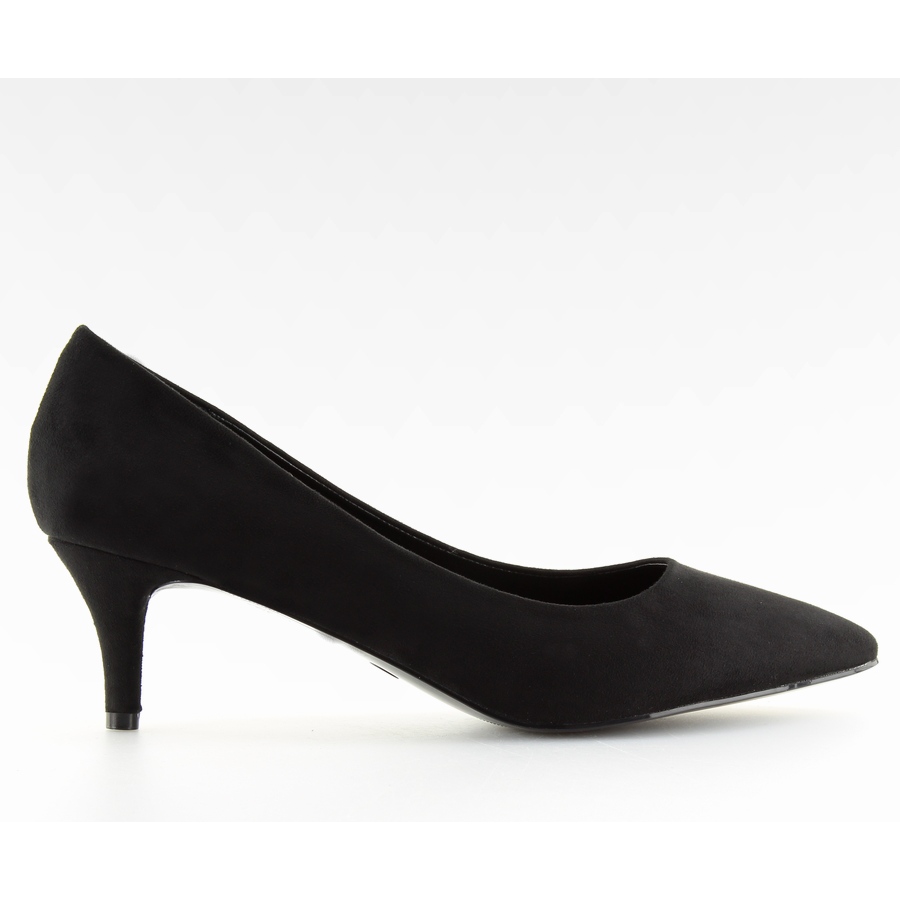 Sapatos de salto baixo 123-2 Preto - um clássico com um toque moderno. Elegantes scarpins pretos confeccionados em camurça ecológica combinam design feminino com conforto de uso. O salto baixo e estável de 6 cm e a biqueira amendoada tornam o modelo perfeito tanto para o trabalho como para uma saída à noite.