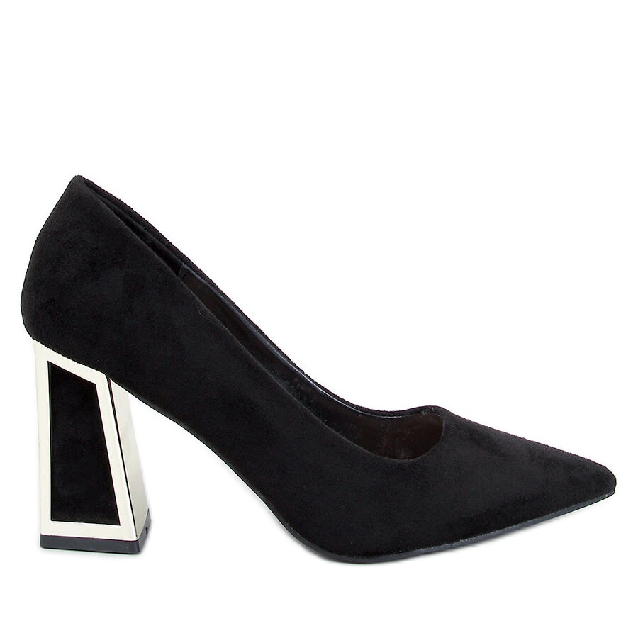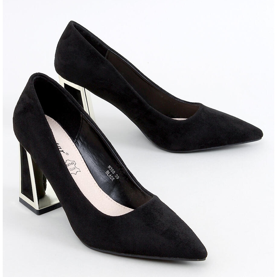 Descubra a elegância e a conveniência das bombas negras Constie. Esses sapatos femininos de camurça com um salto geométrico de 9 cm de altura são a combinação perfeita de estilo e conforto. O corte bem formado em combinação com as inserções de ouro chama a atenção e adiciona um caractere único a qualquer estilização.