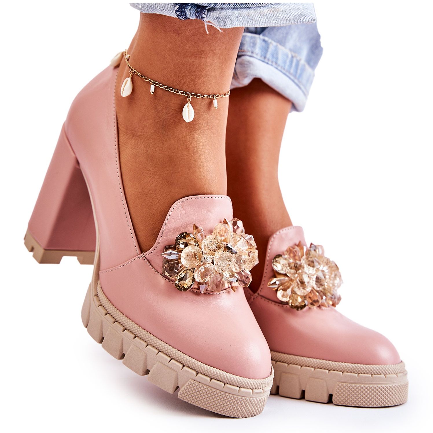 ### Elegantes bombas PA2 com decoração - rosa suave e bege