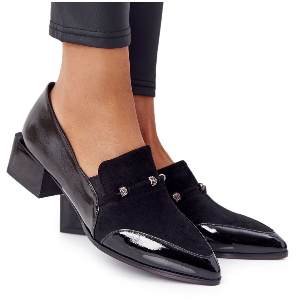 Os elegantes sapatos de salto alto S. Barski Premium na cor preta são a escolha perfeita para mulheres que valorizam estilo e conforto. Estes sapatos, pertencentes à renomada coleção S. Barski PREMIUM COLLECTION D&A, foram cuidadosamente confeccionados a partir de uma combinação de couro ecológico envernizado e camurça ecológica, o que lhes confere um caráter único.