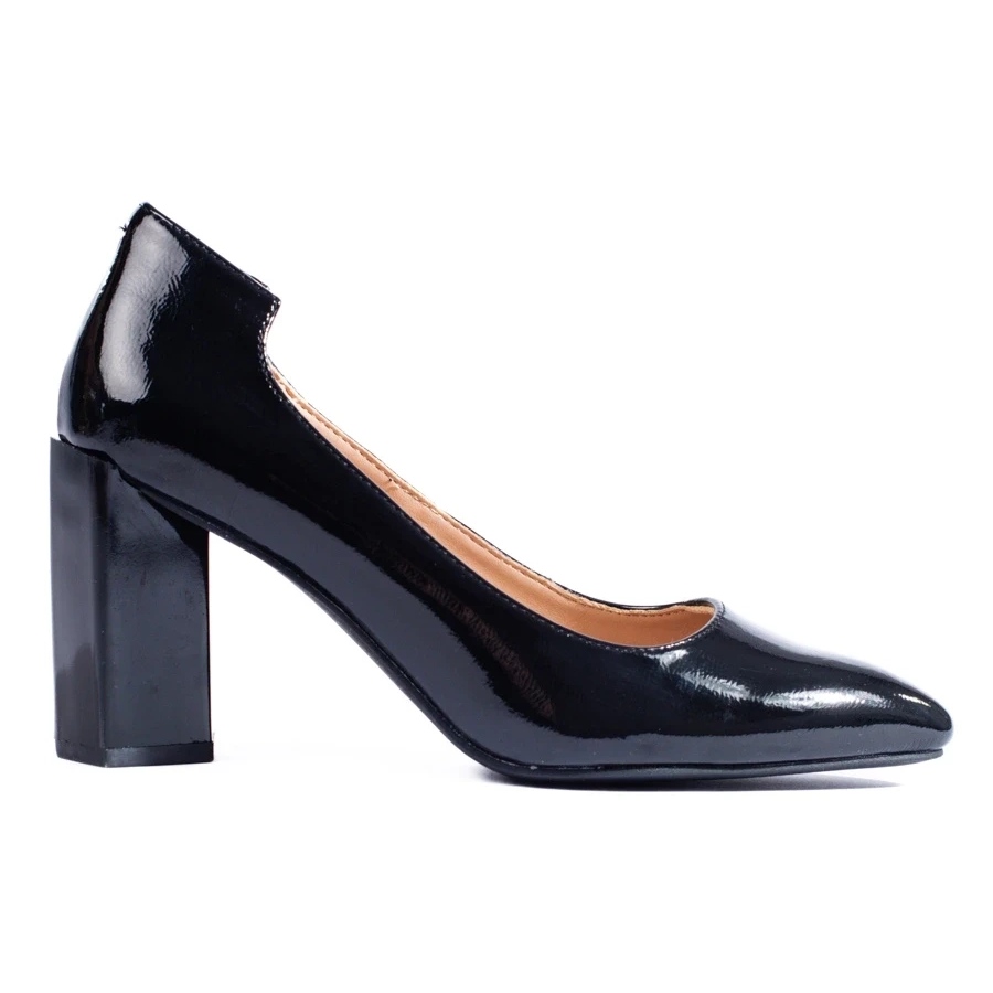 As elegantes bombas femininas negras de uma marca diferente - um clássico em uma edição envernizada. Perfeito para a noite, celebração ou para um visual elegante no escritório; Eles combinam um estilo atemporal com a conveniência.