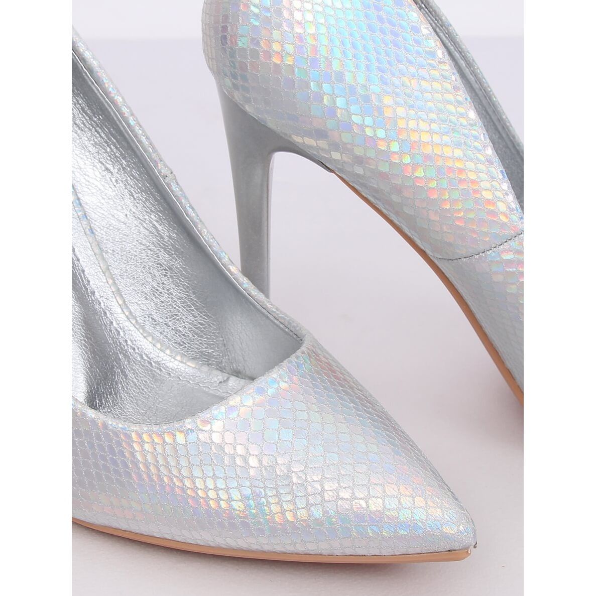 Os sapatos de estilete prateados holográficos NF-52 Silver são a escolha perfeita para mulheres que querem se destacar na multidão. Esses sapatos fenomenais encantam não só pelo seu lindo acabamento holográfico, que brilha em cores diferentes dependendo da luz, mas também pelo seu design fino com delicadas pontas pontiagudas. Um estilete alto de 10,5 cm acrescenta elegância e alonga a figura, fazendo com que cada mulher se sinta especial com ele.