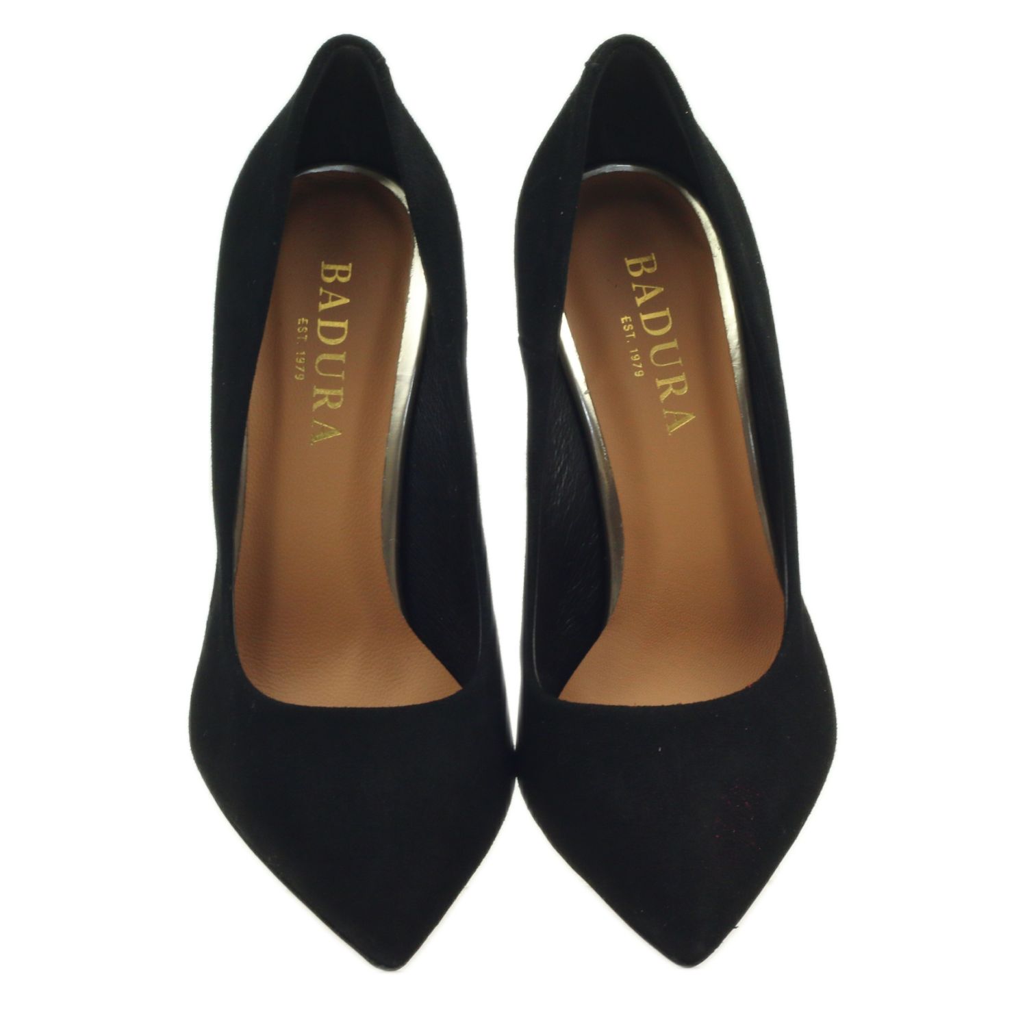 Os scarpins femininos Badura 2569 pretos são a escolha perfeita para mulheres que desejam aliar elegância ao conforto. Estes sapatos leves da coleção da conceituada marca polaca Badura distinguem-se pelo salto agulha de 10,5 cm, que realça a figura e confere elegância a qualquer estilo. Feitos de couro nobuck natural da mais alta qualidade, os sapatos encantam com seu design minimalista e bico fino sutil e delicado.