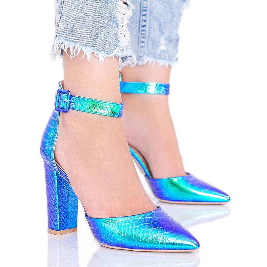 Os scarpins Ashley são um verdadeiro must-have no guarda-roupa de toda mulher! Apresentamos fenomenais sapatos de salto alto holográficos azuis que encantam pelo seu design moderno. Graças à tira no tornozelo, não só se ajustam bem ao pé, mas também acrescentam elegância a qualquer estilo.