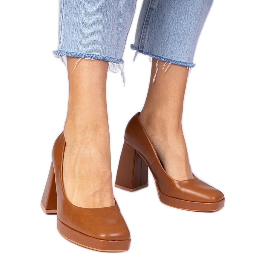 Um nariz quadrado que caracteriza esse modelo é um sucesso das últimas tendências, adicionando originalidade. Um belo tom de marrom, referido pelo fabricante como camelo, se encaixa perfeitamente com várias estilizações - do dia a dia a passeio noturno. Você pode combinar essas bombas com vestidos, saias ou calças, o que as torna um elemento extremamente universal de roupas.