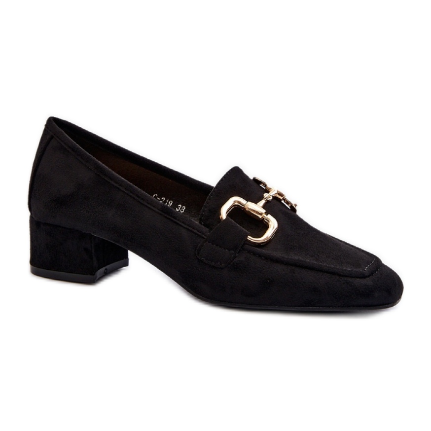 Modelo de bombas Dolvira C-219 Black de etapa em estilo é a escolha perfeita para todas as mulheres que desejam combinar a elegância com o conforto diário. Esses sapatos da moda são incorporados em um salto estável na forma de um quarteirão, o que garante conforto ao usar por muitas horas. Feito de couro ecológico de camurça de alta qualidade, eles certamente atrairão atenção com sua aparência moderna e elegante.