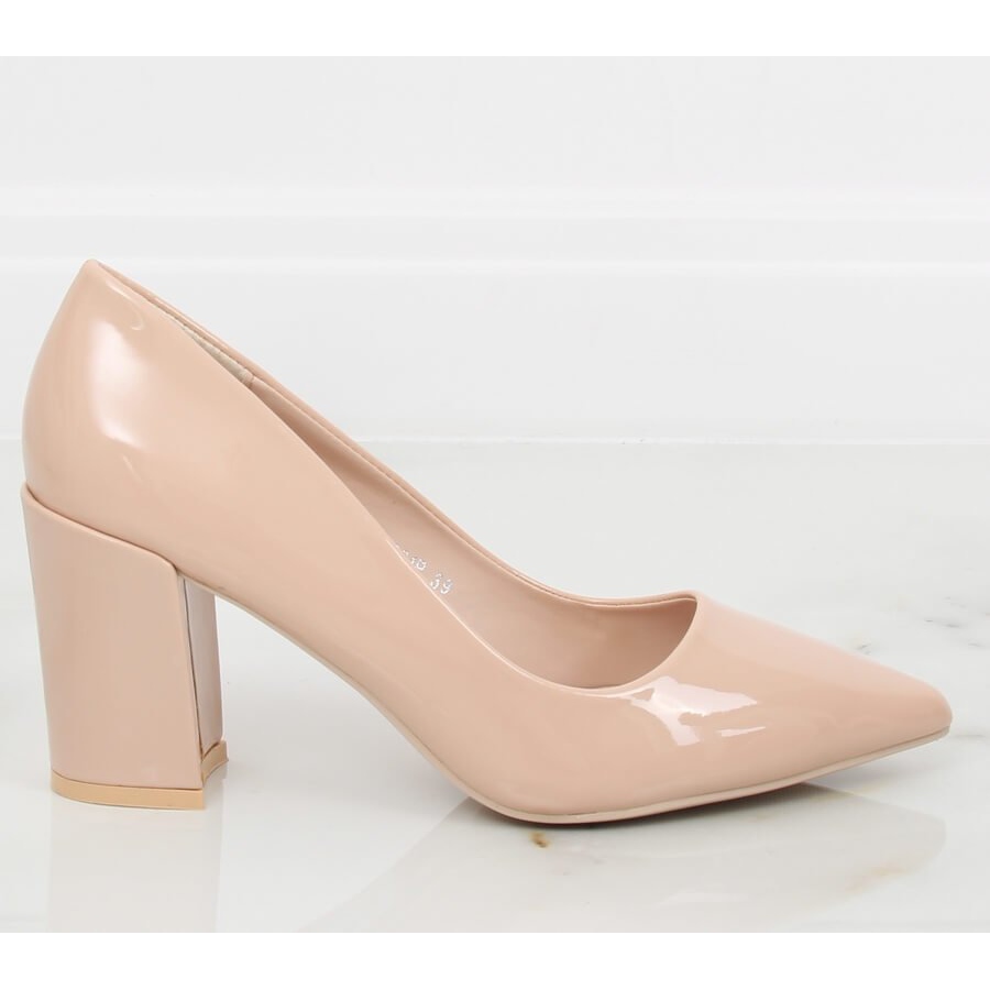 Bombas femininas elegantes com um tipo de salto estável com uma altura de 8,5 cm. O corte clássico e bem bem torneado com um nariz pontudo e acabamento envernizado combina perfeitamente elegância atemporal com funcionalidade diária. Feito de couro ecológico em uma cor bege universal - ótima para o trabalho, para uma reunião ou resultados mais formais.