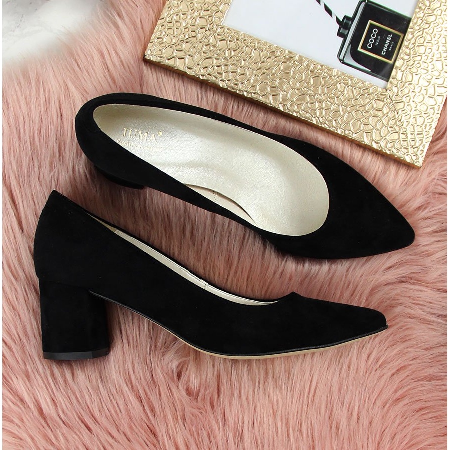 Os scarpins Juma em camurça preta são a escolha perfeita para mulheres que valorizam elegância e conforto. Estes sapatos da moda de um renomado fabricante polaco distinguem-se não só pelo seu acabamento cuidadoso, mas também pelo seu estilo único que complementa perfeitamente os estilos do dia a dia e da noite.