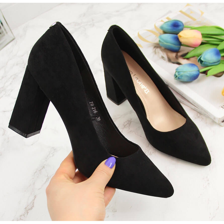 Classic em uma edição moderna - as bombas de Sergio Leone combinam estilo e conforto. A parte superior feita de couro ecológico de camurça de alta qualidade oferece aos sapatos uma aparência elegante e fosca, e as cores pretas atemporais as fazem combinar com muitos estilos - do escritório, até a noite e saídas casuais.