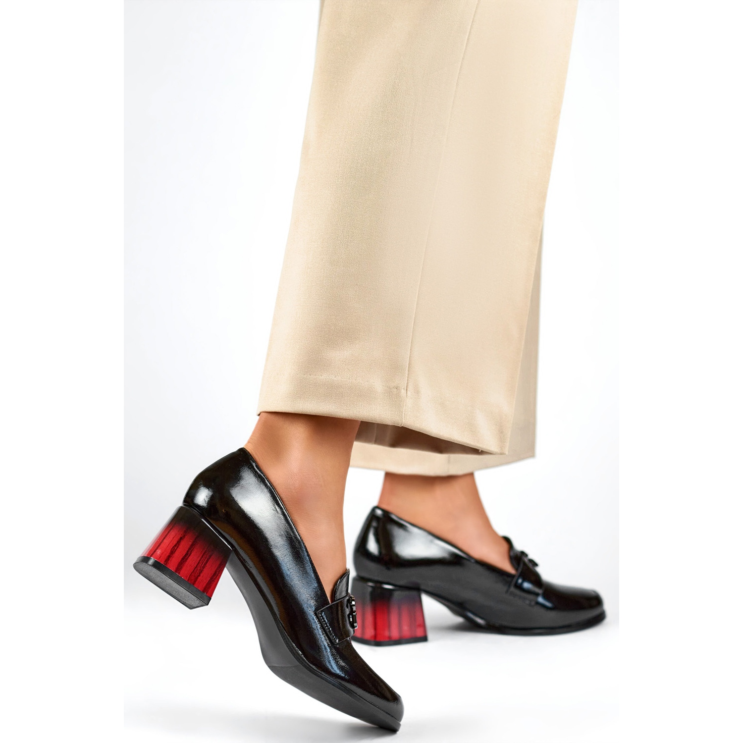 Essas bombas têm um salto de 5,5 cm de altura, o que não apenas acrescenta elegância sutil, mas também garante estabilidade e conforto, o que é especialmente importante durante as horas de uso. Graças à inserção, vestir e remover sapatos se torna rápido e simples, o que certamente será apreciado por todas as mulheres ocupadas.