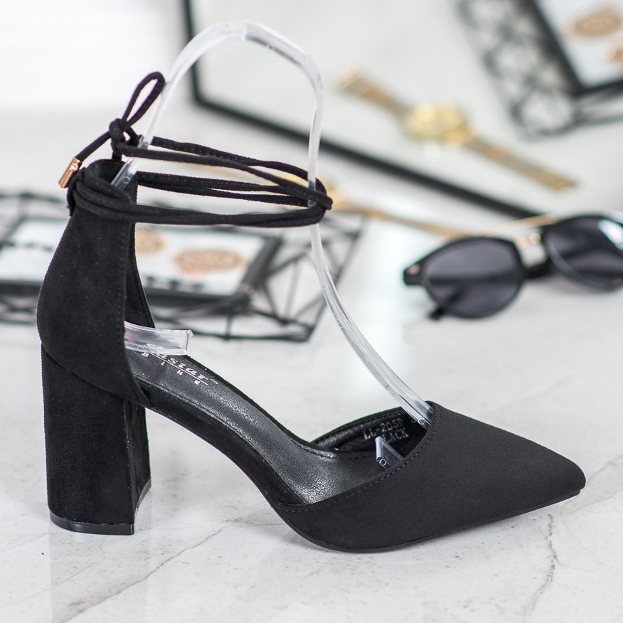 Apresentamos os scarpins pretos da marca Seastar, que serão a escolha perfeita para qualquer mulher elegante. Estes sapatos clássicos com atacadores são confeccionados em couro camurça ecológico de alta qualidade, o que garante um visual estiloso e conforto de uso. O nariz amendoado esconde uma pitada de elegância, perfeito para diversas ocasiões - desde cerimônias até passeios noturnos e festas.