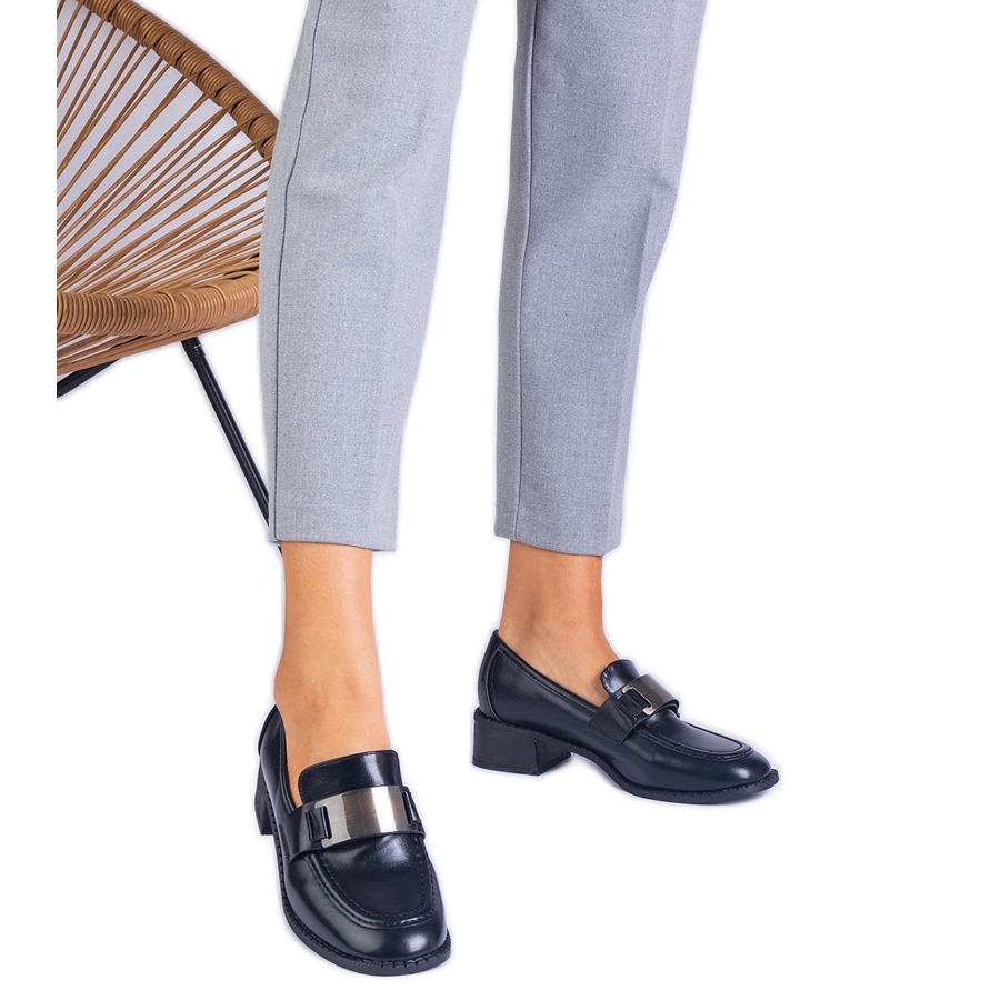 Descubra a elegância a cada passo com nossas bombas pretas em um post baixo com uma decoração metálica. Esses sapatos exclusivos são a escolha perfeita para todas as mulheres que querem combinar estilo com conforto. Feito de couro orgânico de alta qualidade, eles se deleitam não apenas com uma aparência atraente, mas também a durabilidade, o que os torna um companheiro confiável todos os dias.