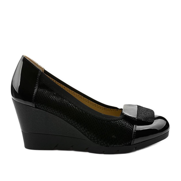 Os sapatos de cunha Black Downreaver são a escolha perfeita para mulheres que valorizam elegância e estilo clássico. Feitos de couro ecológico preto de alta qualidade, estes sapatos apresentam um padrão sutil de pele de cobra que adiciona um caráter único. Biqueira e salto laqueados complementam perfeitamente o conjunto, conferindo aos sapatos um visual fashion.