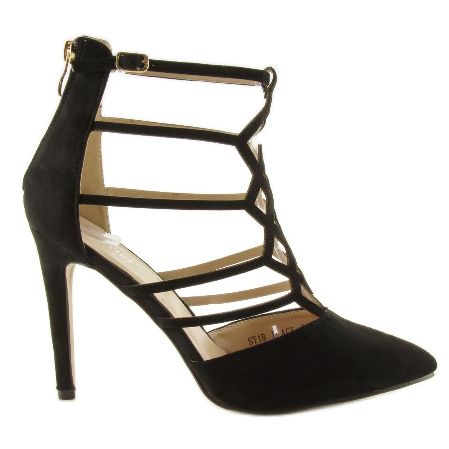 Os scarpins distinguem-se pelo seu design original graças às tiras cruzadas no peito do pé, que não só têm um aspecto bonito, mas também proporcionam um excelente apoio para os pés. Perfeito para ocasiões especiais, passeios noturnos ou reuniões elegantes - o SY18 preto é uma proposta para mulheres que desejam combinar conforto com elegância e moda.