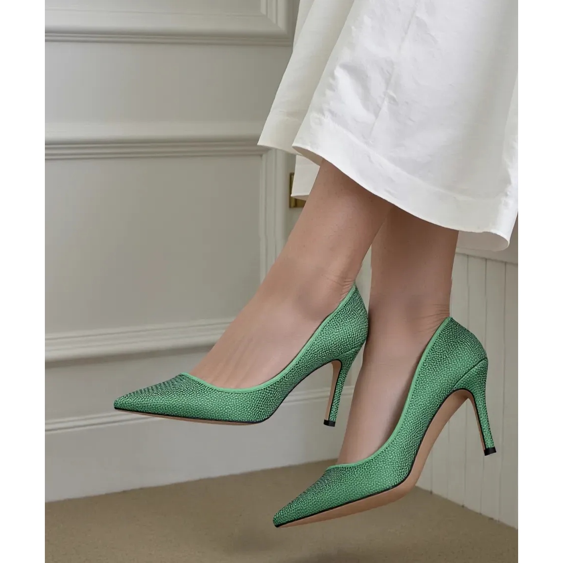 As bombas verdes Elysianas são uma adição sensacional a todas as roupas de noite. Seu padrão brilhante significa que eles podem ser facilmente combinados com um vestido elegante e calças de terno, e a embalagem original do fabricante adiciona valores a cada compra.