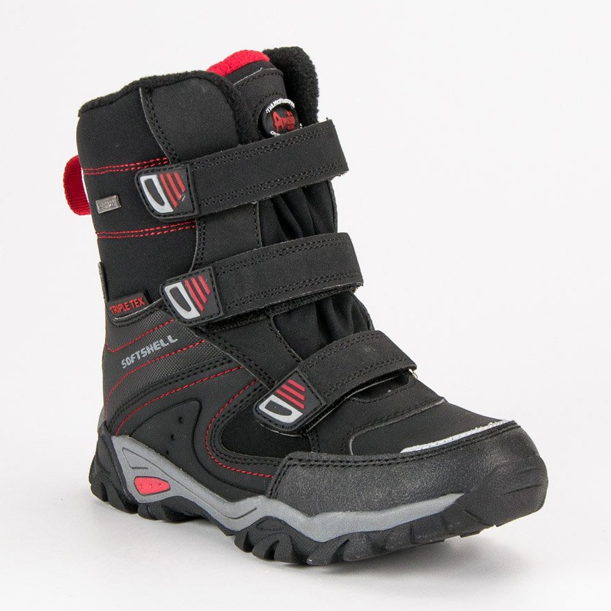 As botas de neve pretas American Club são uma escolha prática para o inverno - sapatos quentes, confortáveis e fáceis de usar para meninos ativos.