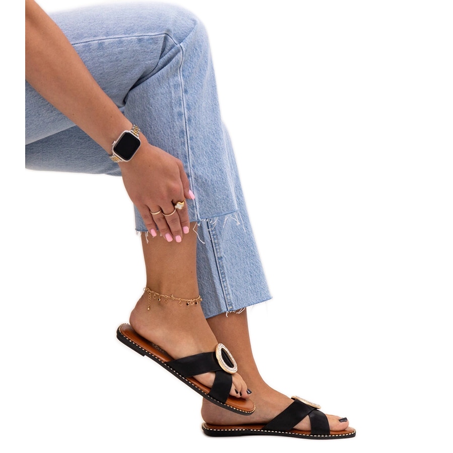 Descubra os flip -flops exclusivos decorados com uma fivela nos strass Salimb em uma cor preta clássica, que é uma excelente proposta para dias quentes de verão. Esses flip -flops elegantes e inseridos combinam conforto e elegância, graças às quais serão o complemento perfeito para sua estilização de verão.
