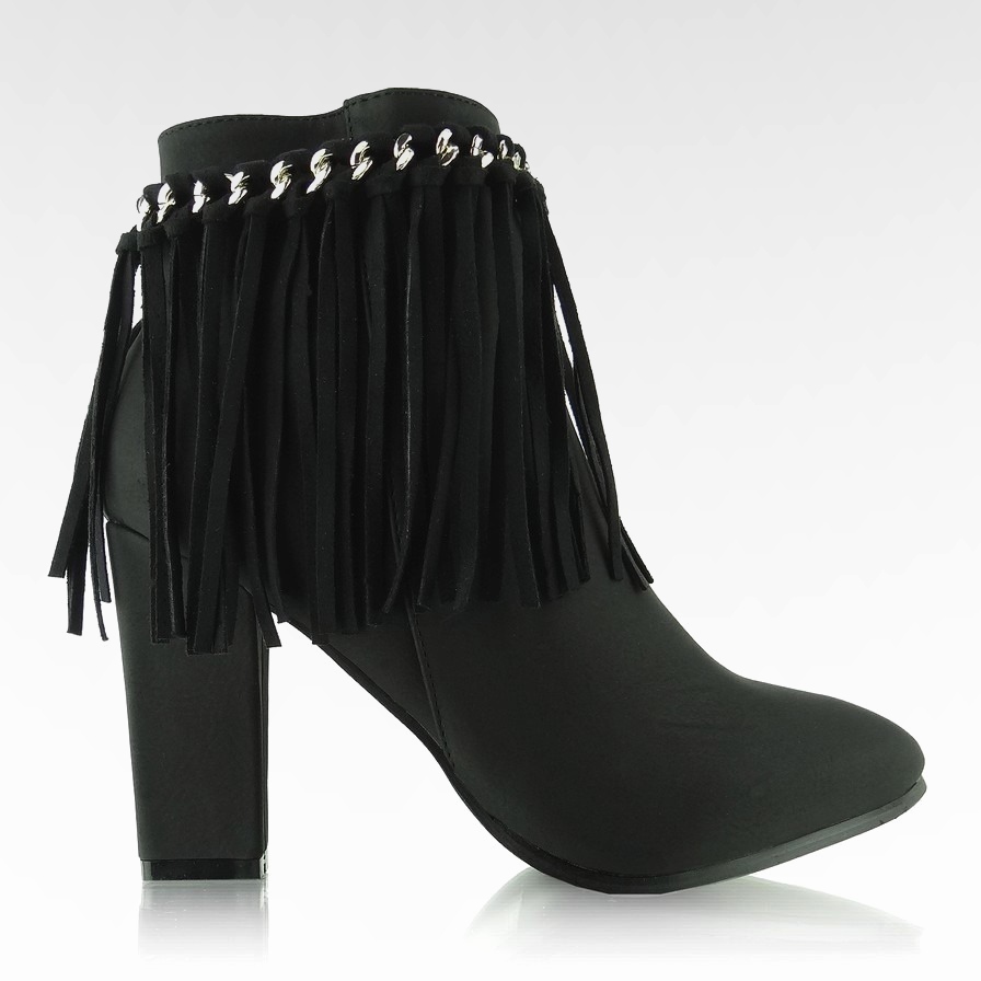 Elegantes botins pretos com franjas e salto largo - estilo 2 em 1 e conforto o dia todo.