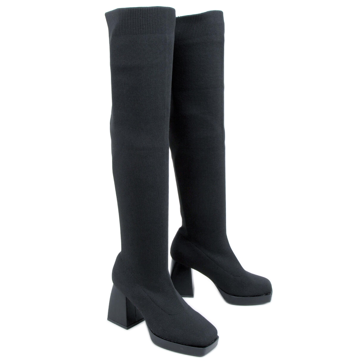 As botas meia de salto alto Hilary Black são obrigatórias no guarda-roupa de toda mulher, encantando não só pelo design moderno, mas também pelo conforto de uso. Estas botas acima do joelho elegantes e casuais certamente enfatizarão sua figura e adicionarão classe.