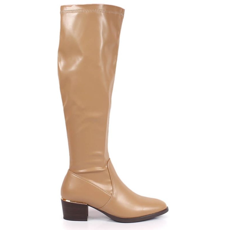 Botas chiques e universais de Vinceza, modelo em janeiro de 160b em uma cor bege da moda. Um corte de alto alcance com um nariz clássico e arredondado e o confortável calcanhar de 5,5 cm garantem estabilidade e aparência feminina, e o revestimento isolado garante conforto nos dias mais frios.