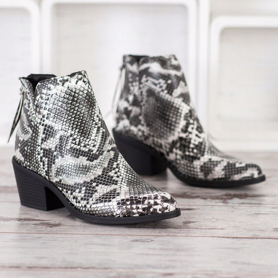 Estas botas são perfeitas para um look casual, acrescentando personalidade a ele. Combinam perfeitamente com jeans, saias e vestidos, o que os torna uma peça versátil do guarda-roupa para o outono/inverno. Escolha botins Snake Print e deixe o seu calçado tornar-se uma verdadeira decoração de qualquer estilo! Encomende imediatamente os botins dos seus sonhos e desfrute de um look fashion todos os dias!