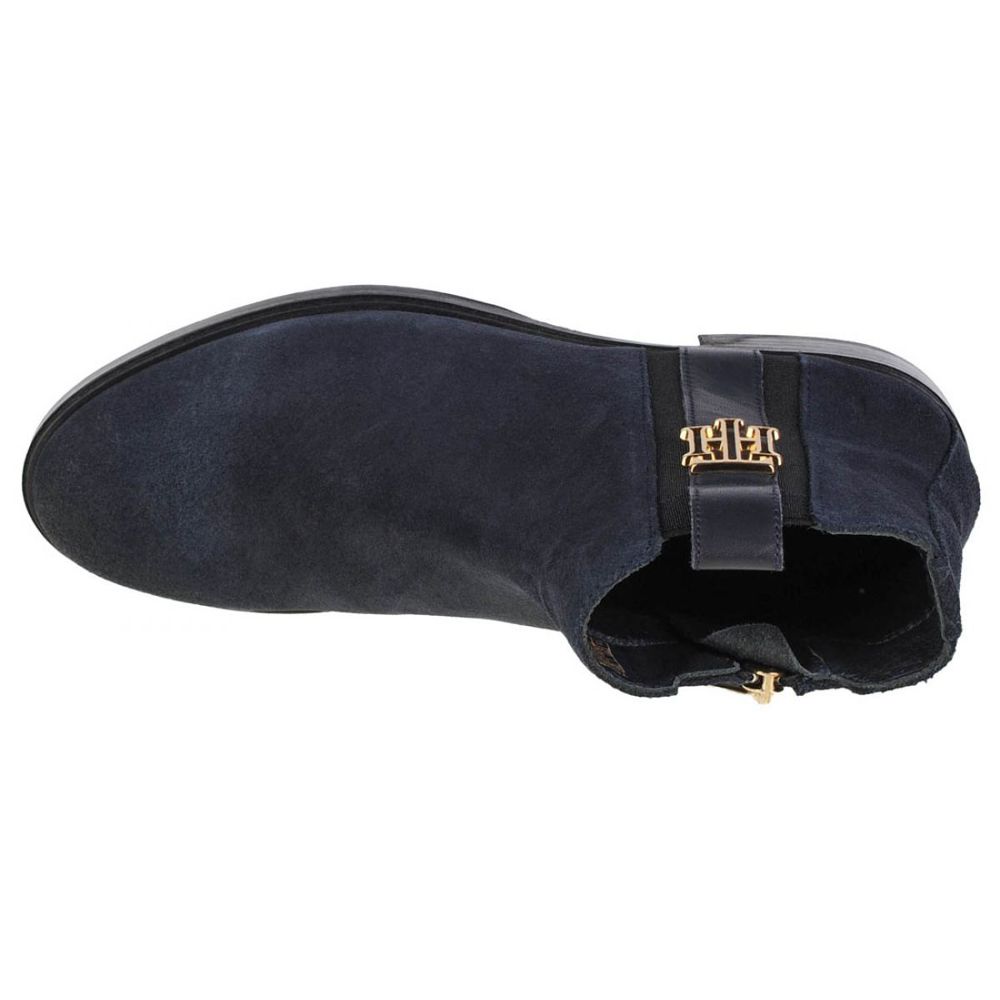 Bota plana feminina Tommy Hilfiger Interlock Suede W FW0FW05184-DW5 Os botins femininos na elegante cor azul marinho são a proposta ideal para mulheres que valorizam a combinação de estilo, conforto e acabamento de alta qualidade.