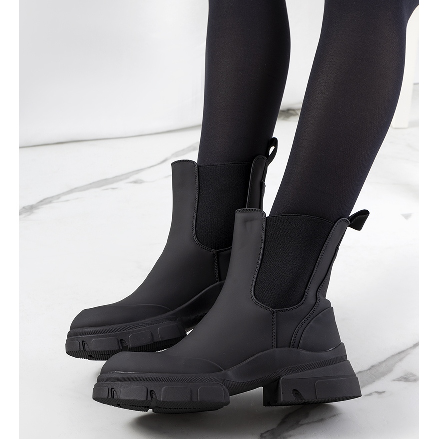 Apresentamos elegantes botins Carlos, que serão um complemento perfeito para o seu guarda-roupa durante o período de transição. Estes sapatos impressionantes com sola grossa tipo trator e biqueira arredondada são uma combinação de estilo e conforto. O design das botas Chelsea torna-as fáceis de calçar e o material elástico em ambos os lados facilita o ajuste ao pé.