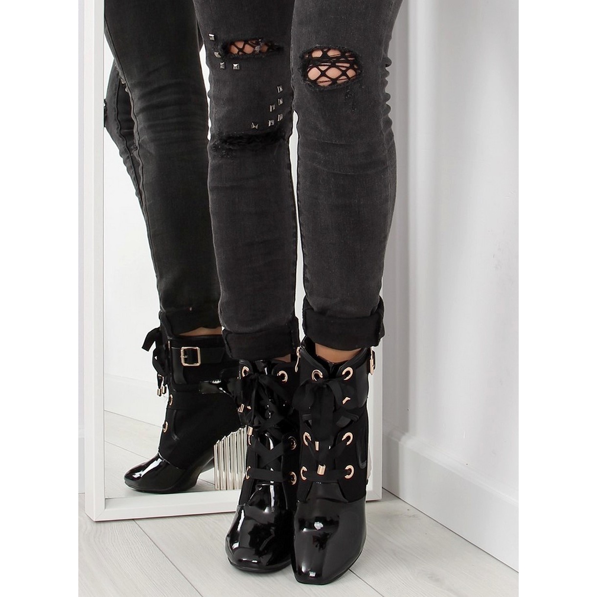 Detalhes: Bota preta metalizada preto