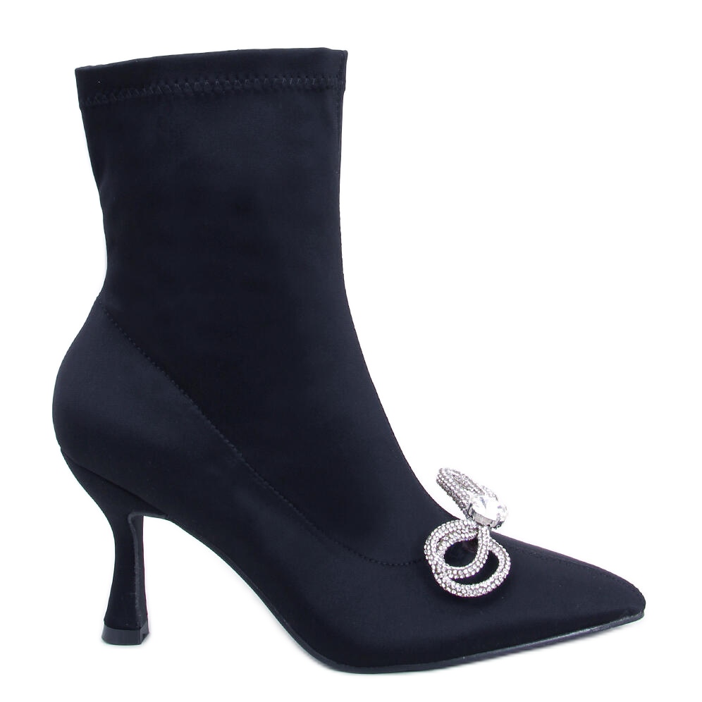 Com estas botas irá certamente chamar a atenção, pois distinguem-se por um sensual salto de 9 cm de altura, perfeitamente equilibrado para o seu conforto. Uma decoração adicional é um laço atraente, cravejado de pedras brilhantes que conferem ao modelo um caráter único. Os dedos pontiagudos adicionam elegância e esbelta a figura, tornando-os a escolha ideal para todas as mulheres elegantes.