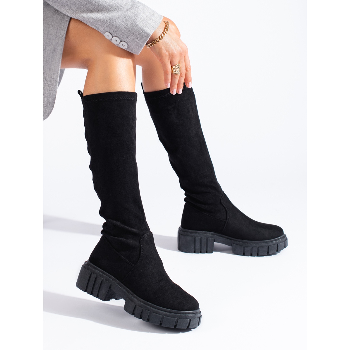 As botas de camurça preta Shelovet são uma combinação de elegância e conforto casual que vão atender às necessidades de toda mulher que valoriza o estilo clássico e o conforto. Estas botas universais são perfeitas para os dias de outono, inverno e primavera, sendo uma ótima opção para diversas ocasiões.