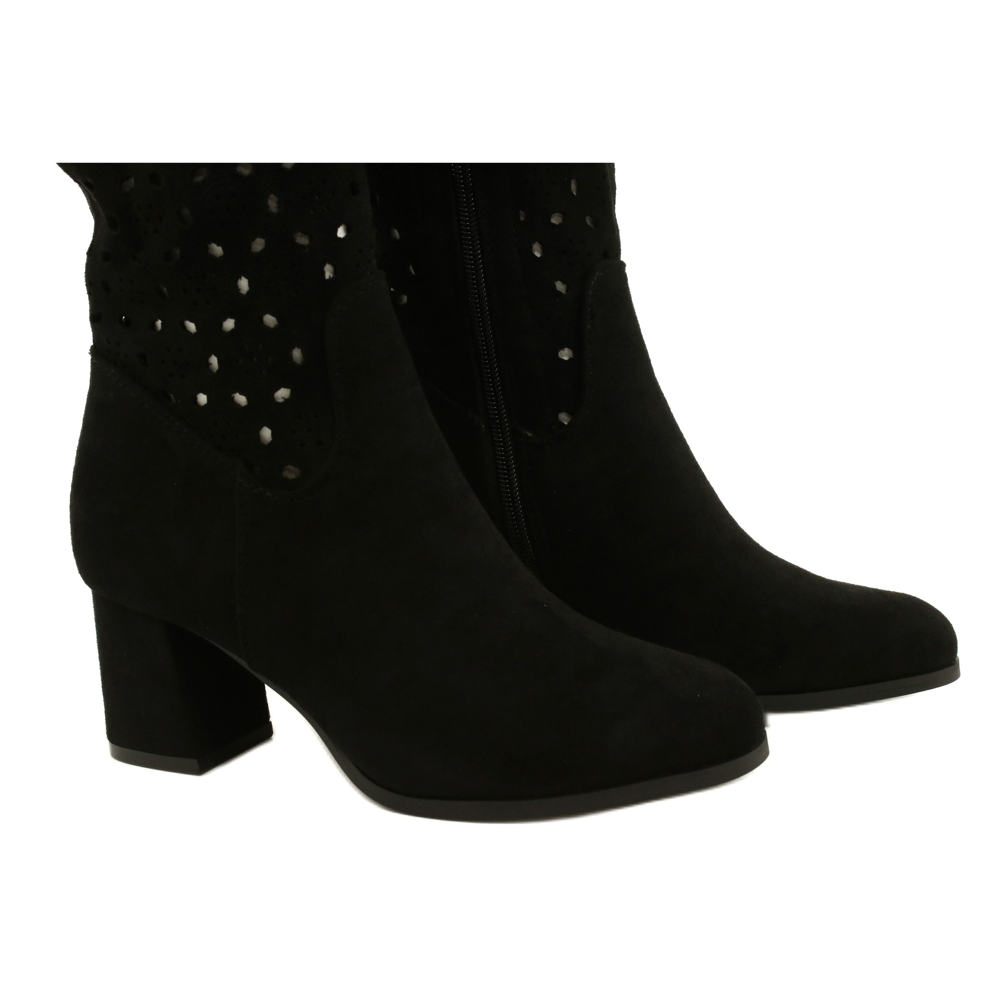 Descubra elegância e conforto com botas de salto alto vazadas da marca M.Daszyński - modelo SA156-10 na clássica cor preta. Perfeitas para a primavera e o outono, essas lindas botas combinam design moderno com funcionalidade.