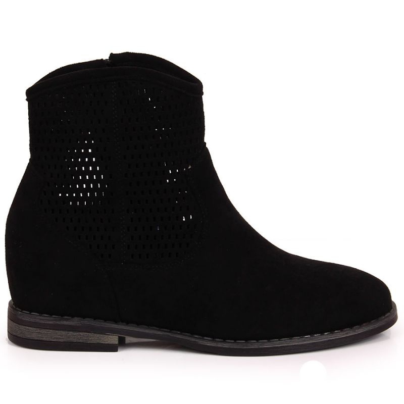 Este modelo distingue-se por uma cunha oculta de 5 cm de altura, que faz com que as pernas pareçam mais finas e ao mesmo tempo garante estabilidade e conforto. Graças ao zíper, calçar e tirar as botas é fácil e rápido. O padrão vazado acrescenta leveza e os torna a escolha perfeita para os dias de primavera ou verão.
