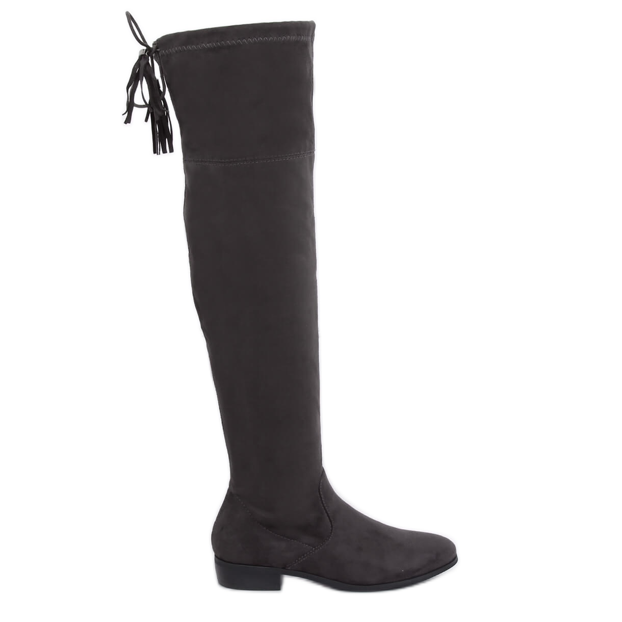 Os mosqueteiros têm biqueira amendoada, o que lhes confere um formato elegante, e o salto plano de 2,0 cm os torna confortáveis para usar o dia todo. O cano alto, que chega acima do joelho, valoriza a figura, e a cor cinza se enquadra nas últimas tendências, sendo um complemento universal em qualquer guarda-roupa.