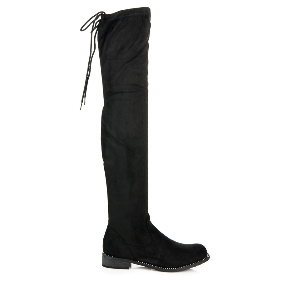 Os mosqueteiros Bestelle pretos são a escolha perfeita para mulheres que desejam adicionar elegância e estilo ao seu guarda-roupa. Estas botas da moda distinguem-se por um design intemporal e um cano alto que chega acima do joelho, o que as faz realçar perfeitamente a figura e são extremamente impressionantes. Confeccionados em camurça ecológica, garantem conforto de uso e aparência estética.