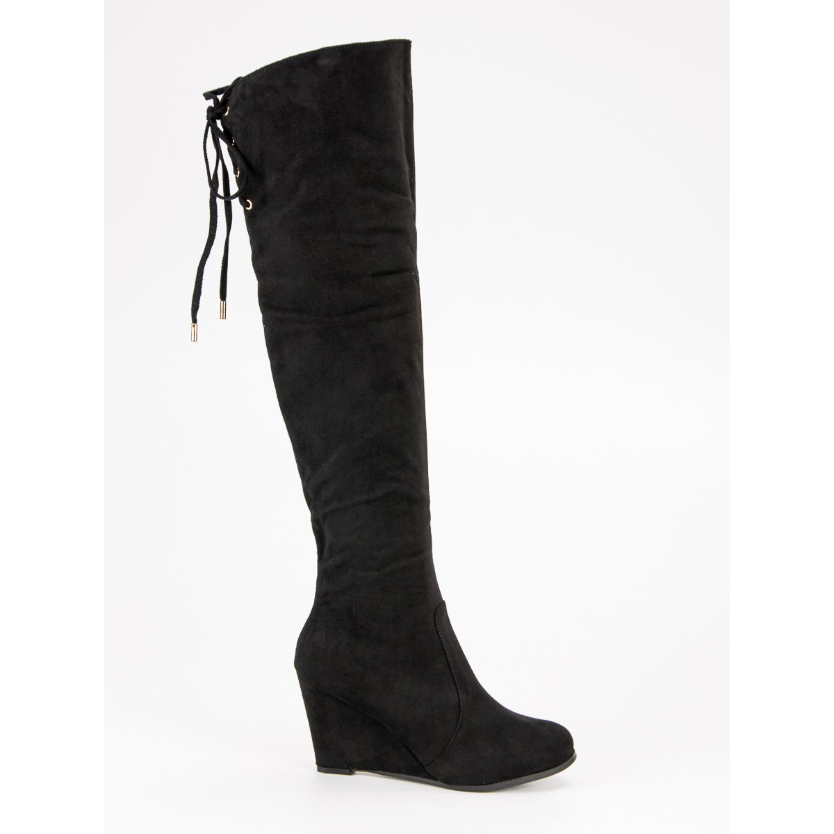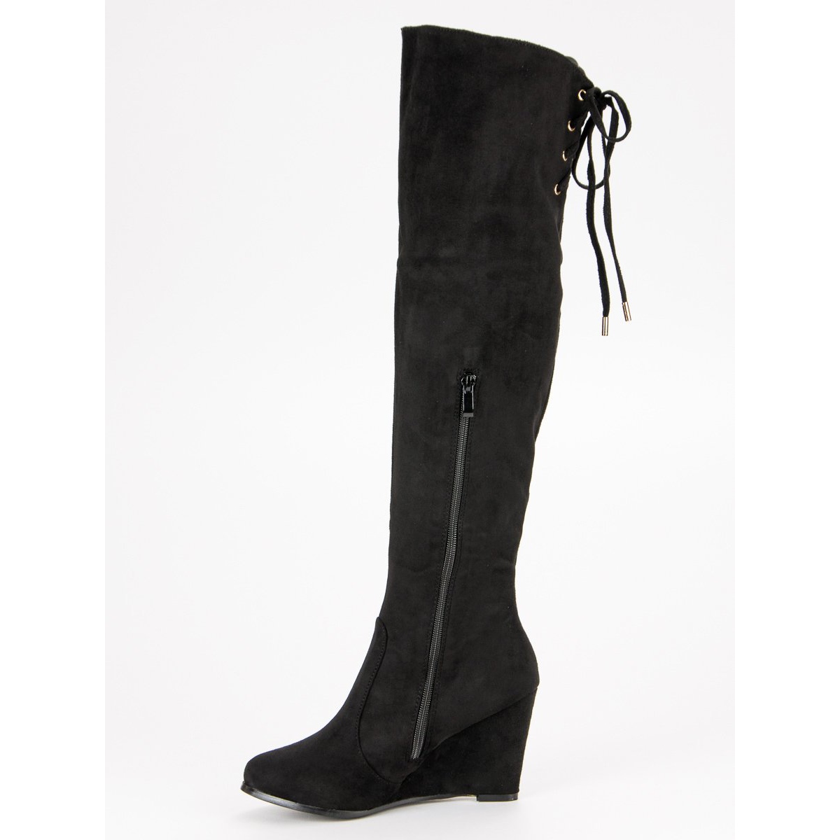 Graças à parte superior longa que chega acima do joelho, esses mosqueteiros alongam lindamente as pernas, e as cunhas de 8,5 centímetros proporcionam estabilidade e conforto adequados durante o uso, sendo uma ótima solução para mulheres que preferem evitar os saltos tradicionais.