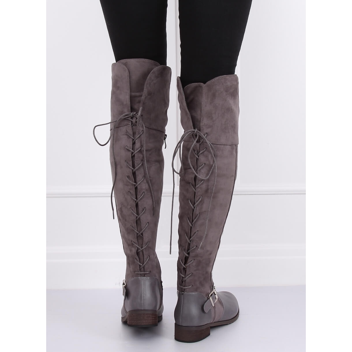 Detalhes: Botas acima do joelho com salto baixo cinza 688-3 cinza