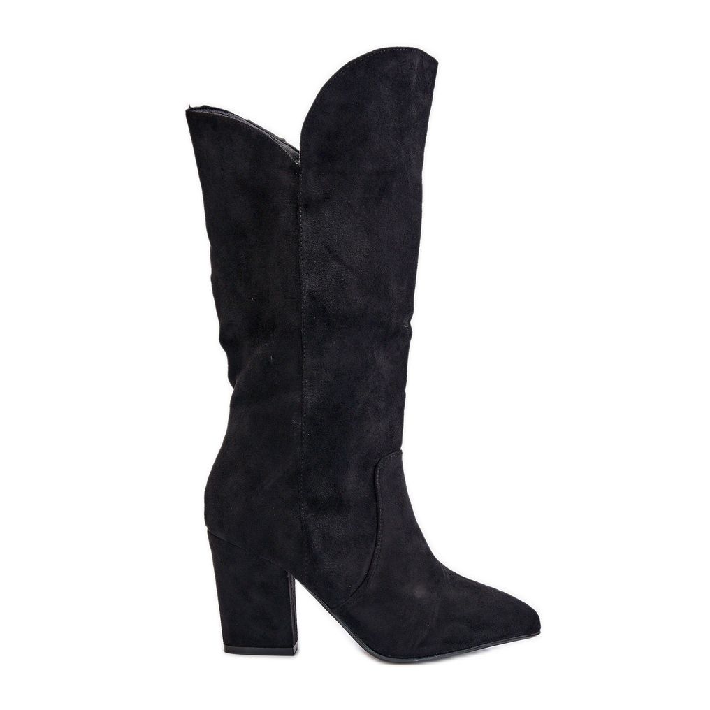Inna marka Botas acima do joelho de salto alto em camurça ecológica, Preto Clorira