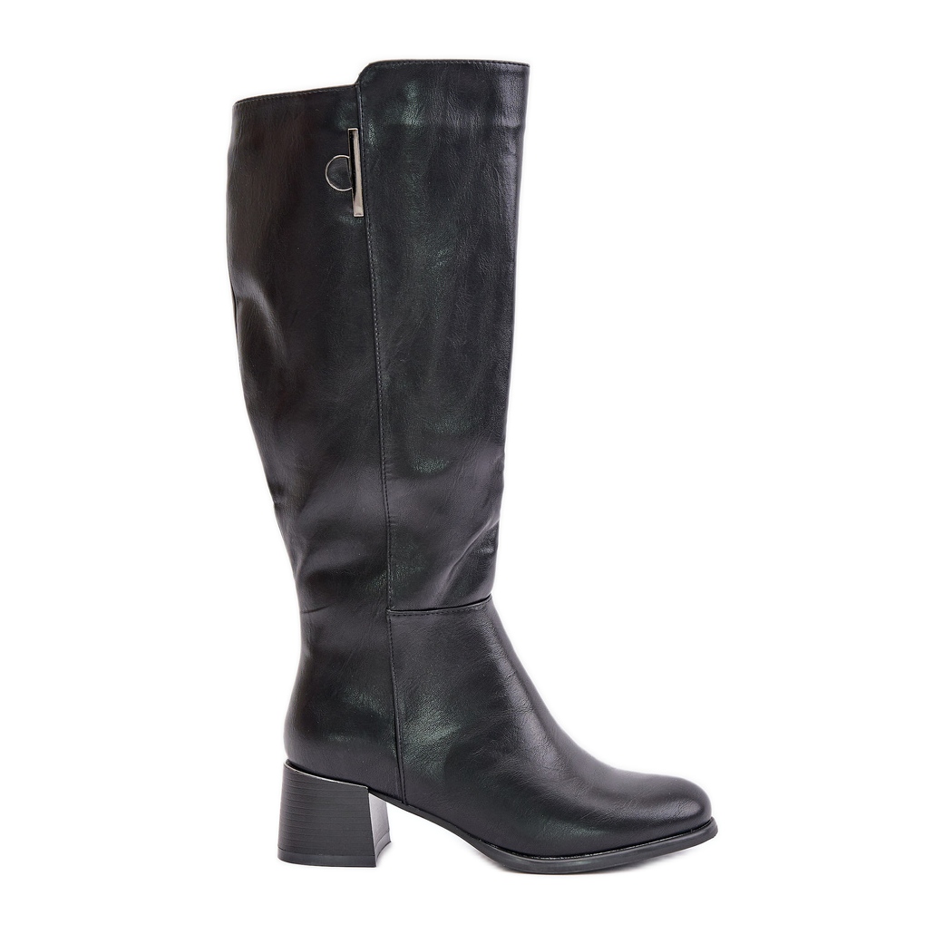 Jezzi Jezzi Botas acima do joelho em couro ecológico com salto alto, pretas Izanae preto