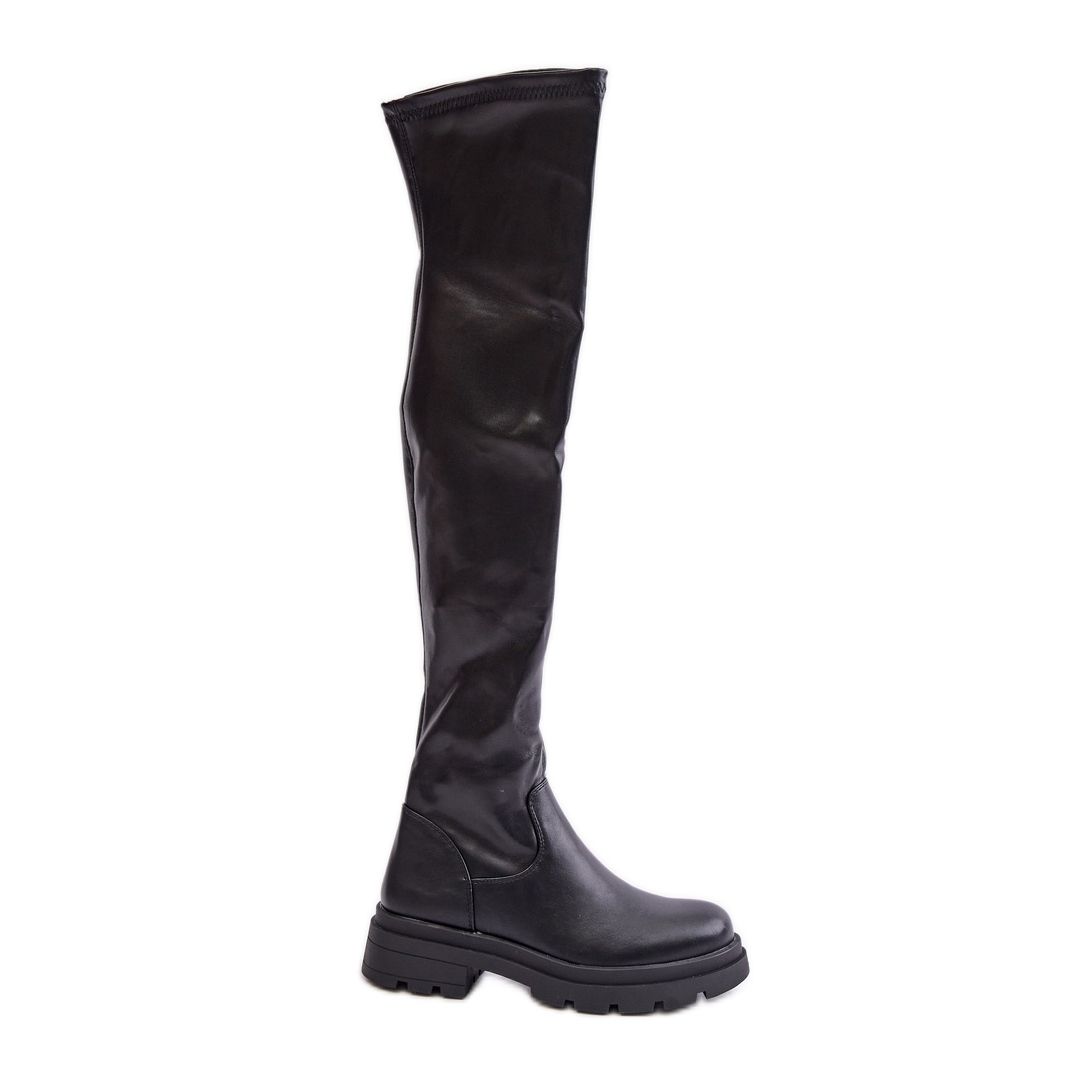 Detalhes: Botas acima do joelho em couro ecológico com salto plano, Santira preta preto