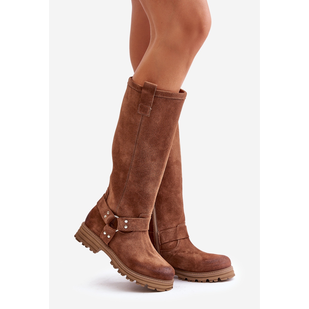 Detalhes: Botas acima do joelho femininas de camurça Lewski 3615 marrom