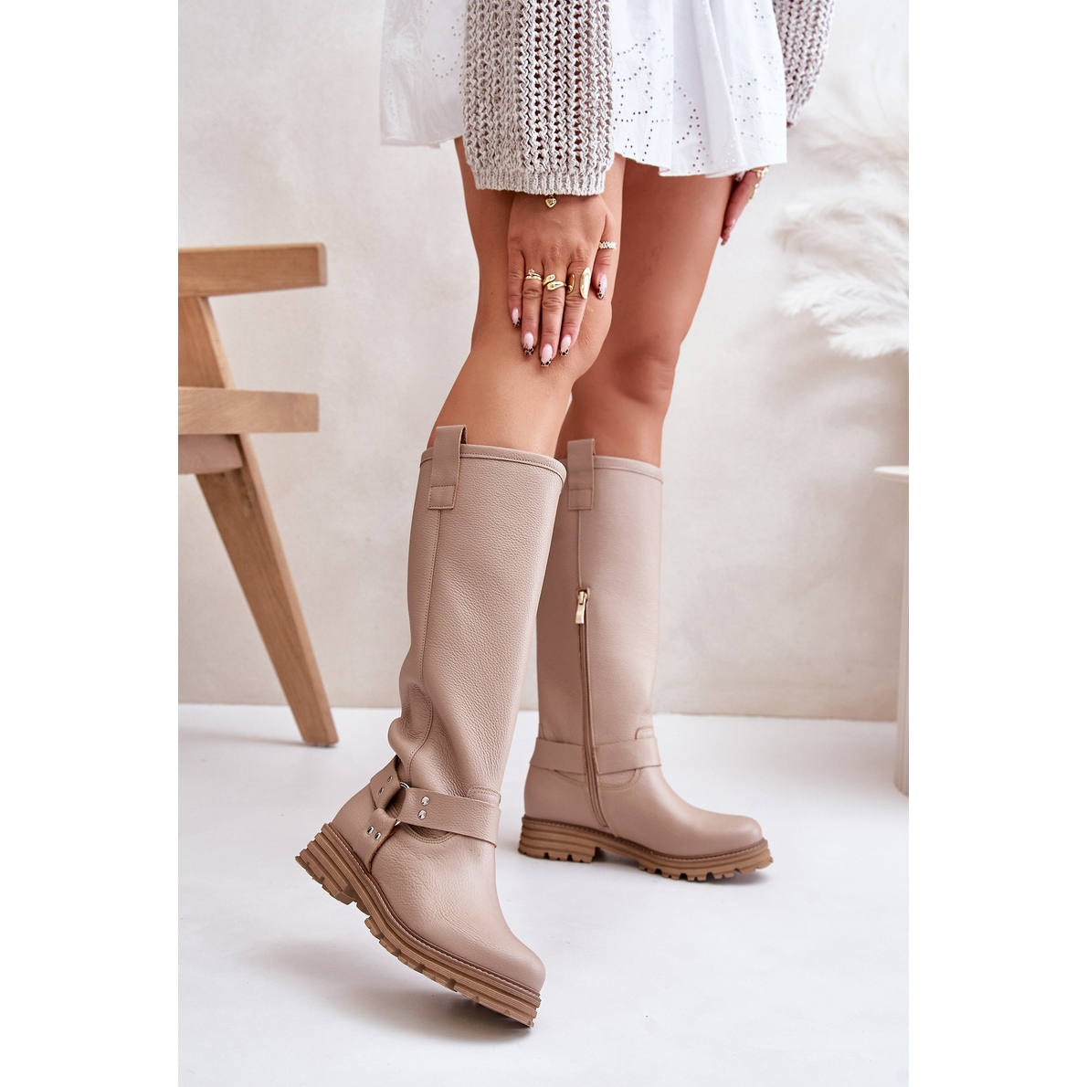 Detalhes: Botas acima do joelho femininas de couro Lewski 3615 bege