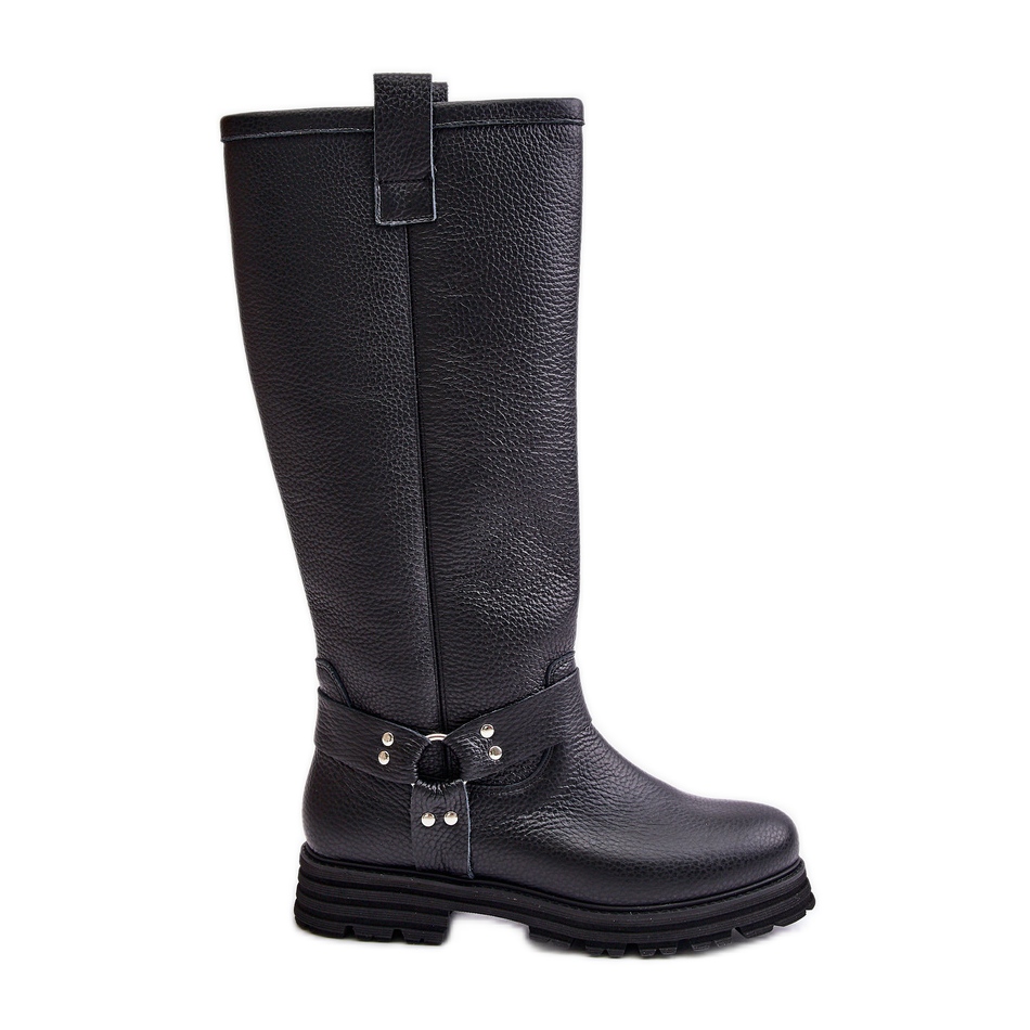 Detalhes: Botas acima do joelho femininas de couro Lewski 3615 pretas preto