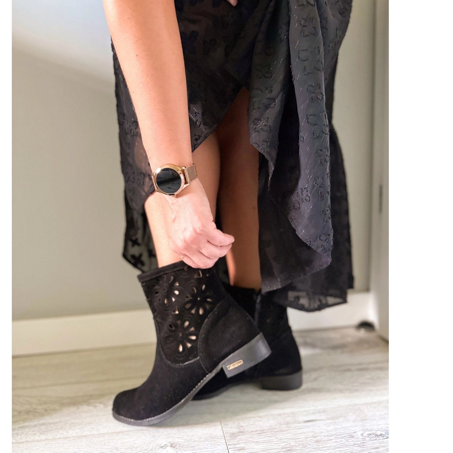 Botas Alice elegantes e funcionais do fabricante polonês Olivier Combine o design da moda e o Open Work com o uso de conforto. Feito inteiramente de couro natural (nubuck na parte superior externa), eles funcionarão diariamente e para o trabalho - eles são delicados com o toque e a pele - amigável, também em contato com o pé descalço.