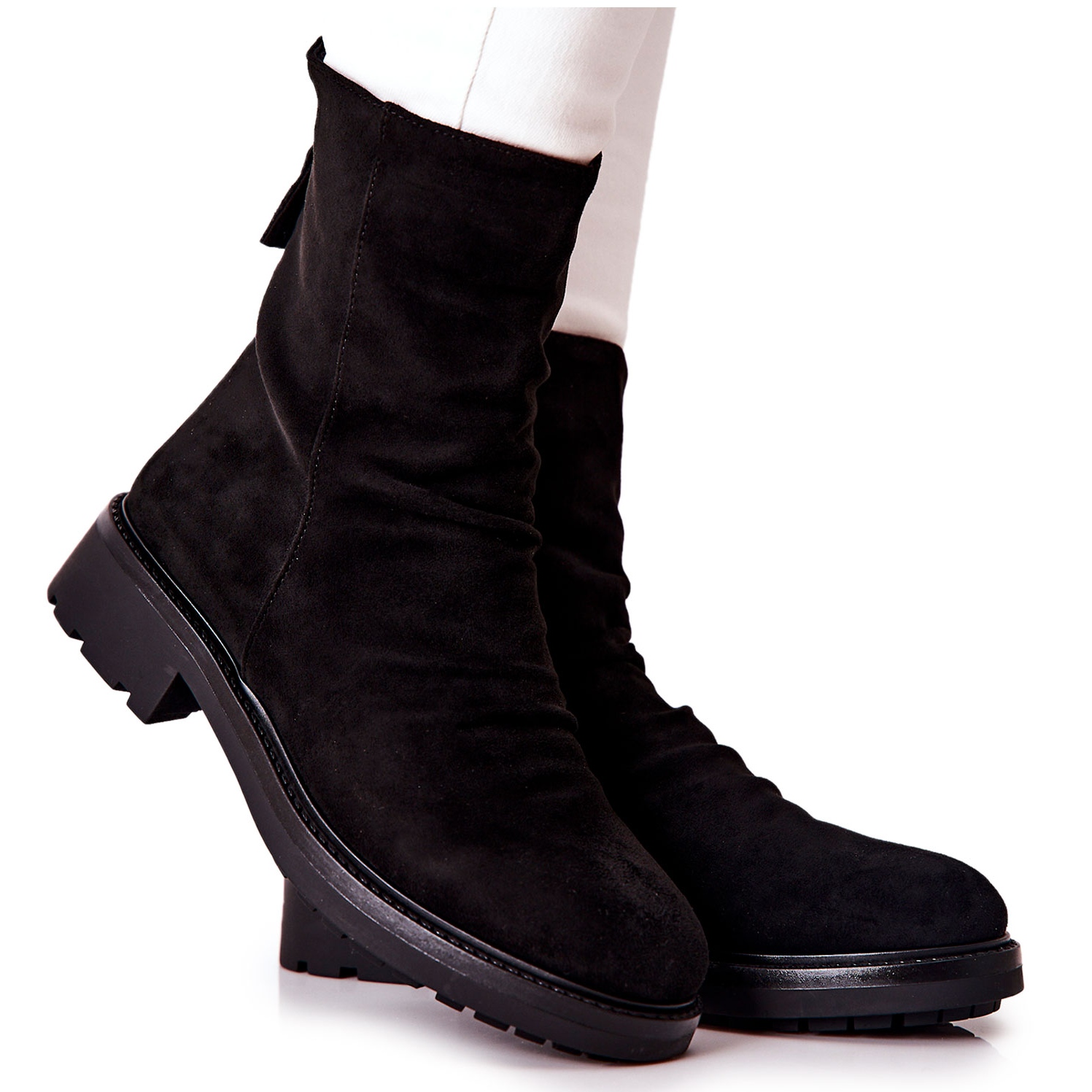 Os botins pretos de camurça alta Trisha enrugados são a escolha perfeita para todas as mulheres que desejam combinar um look moderno com conforto. Estas elegantes botas Chelsea são feitas de camurça ecológica de alta qualidade, o que as torna não apenas elegantes, mas também ecológicas. O interior das botas é preenchido com uma confortável manta para calçados, que proporciona aquecimento adequado nos dias mais frios.