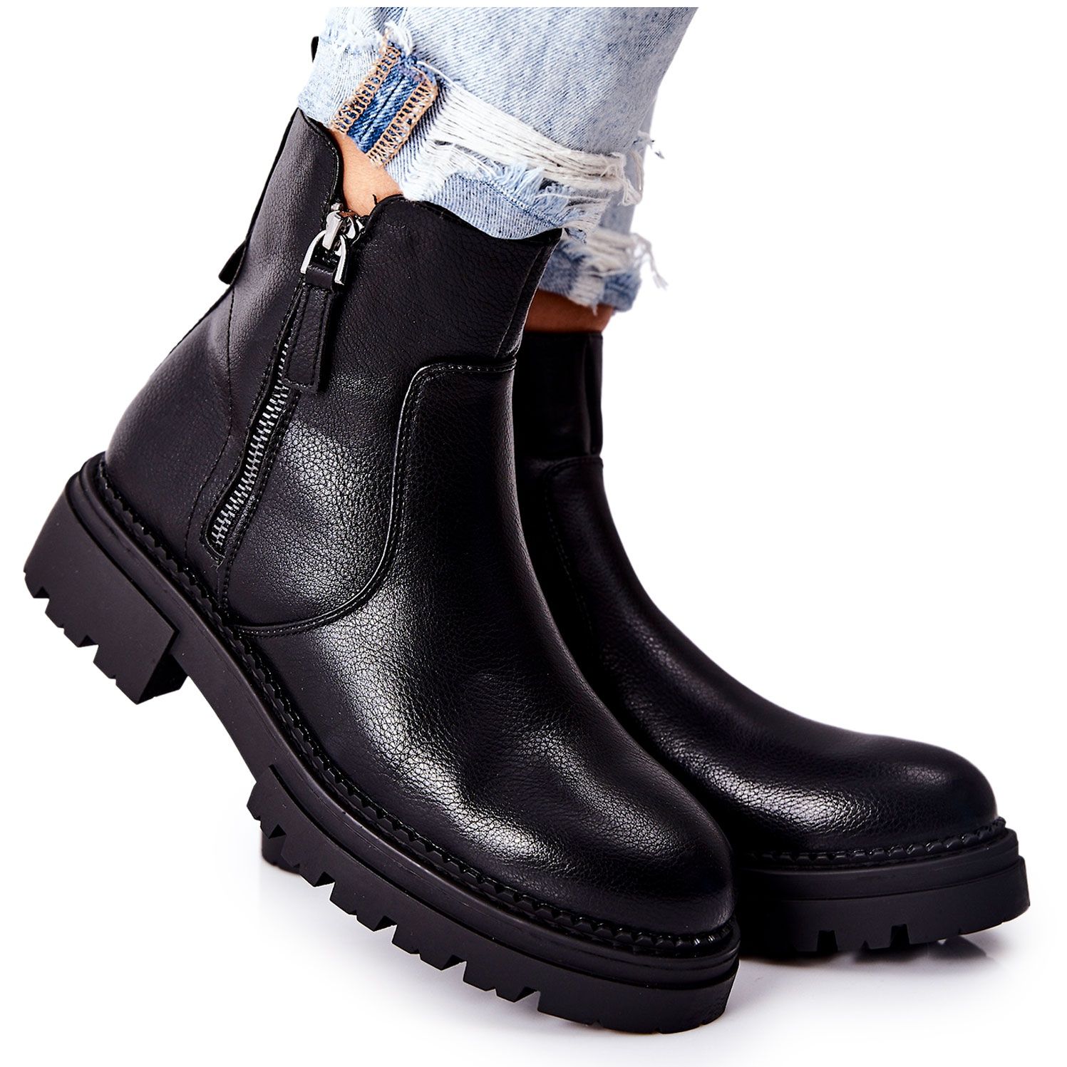 Estes elegantes botins apresentam zíperes em ambos os lados da parte superior para facilitar a colocação e retirada. Uma decoração adicional é um encaixe sutil nas costas, que confere ao calçado um caráter original. A sola estável garante conforto no uso diário, tornando-os perfeitos tanto para o trabalho quanto para reuniões de amigos.