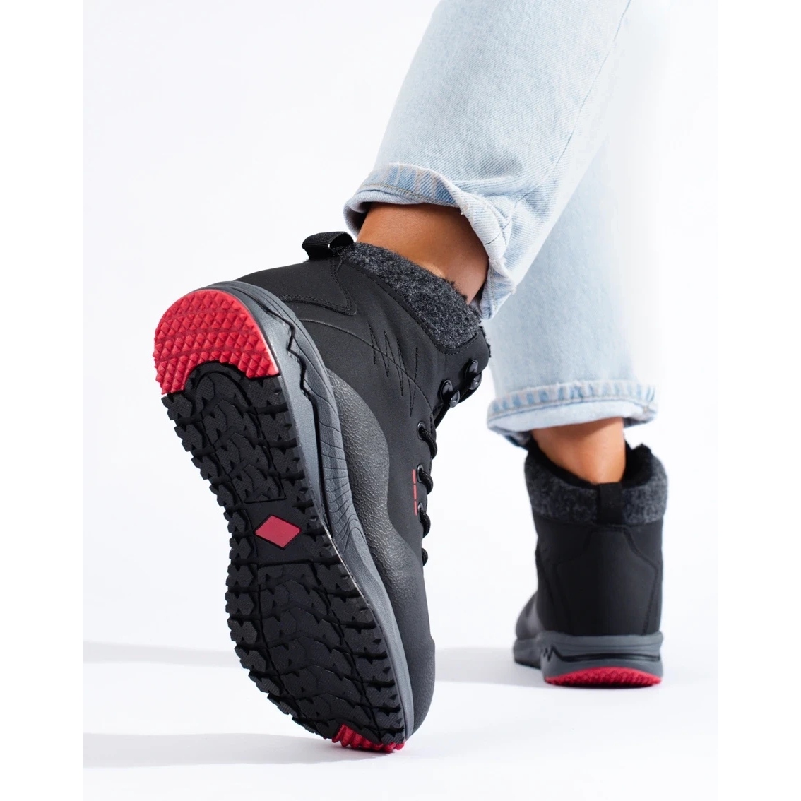 Sapatos práticos, elegantes e solidamente fabricados com DK Trekking, projetados para mulheres ativas. As cores pretas, universais e cortes esportivos fazem com que funcionem durante caminhadas mais longas e passeios diários em dias mais frios.