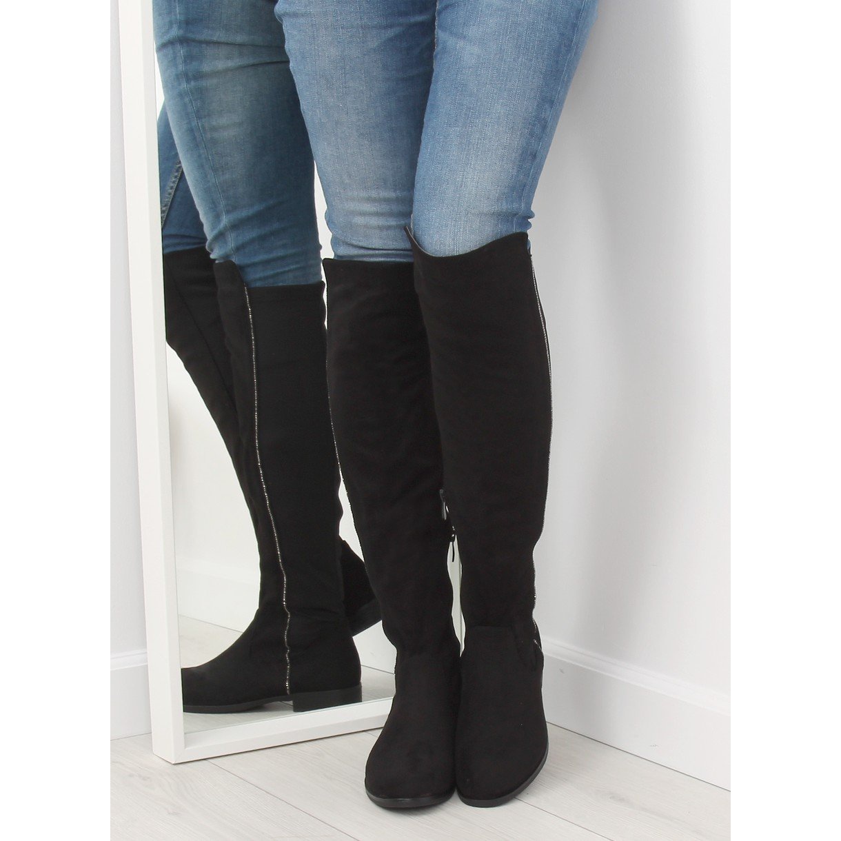 Detalhes: Botas altas elásticas pretas na coxa 168-188 Preto II-GAT