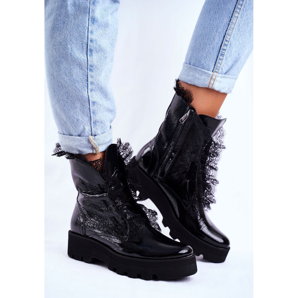 As botas confeccionadas em couro envernizado natural são decoradas com rendas decorativas na parte superior, o que lhes confere um caráter único. O confortável encaixe em couro natural proporciona excelente ventilação e conforto, para que você possa usá-los por muitas horas sem sentir nenhum desconforto.